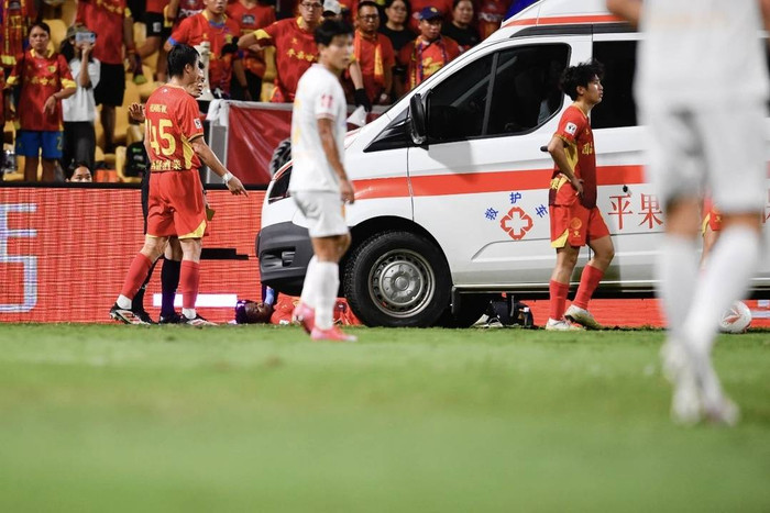 随后,张志雄被裁判出示一张黄牌予以警告,但阿萨莫阿的受伤却颇为严重。他被撞击后失去平衡,头部直接与场外LED广告屏发生正面碰撞。阿萨莫阿倒地后不起,并被救护车送往医院。
