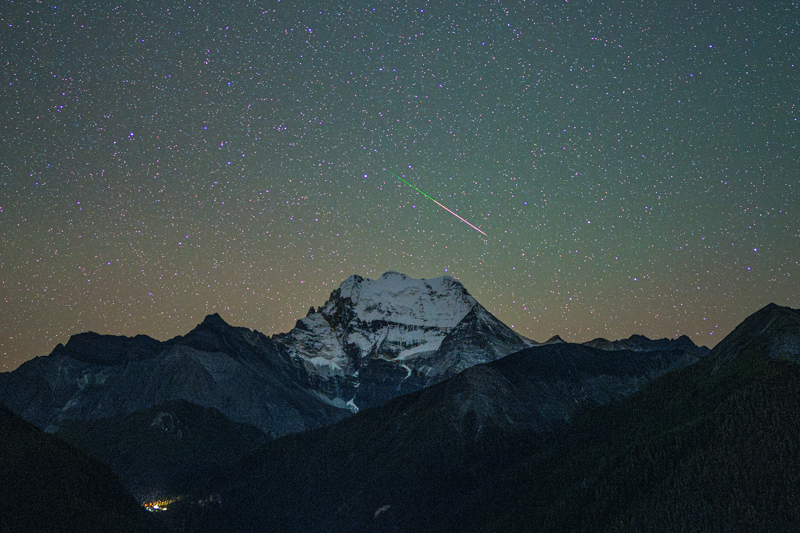 10月22日凌晨,四川省甘孜藏族自治州稻城亚丁景区拍摄的猎户座流星雨。\n 新华社 戴建峰 摄