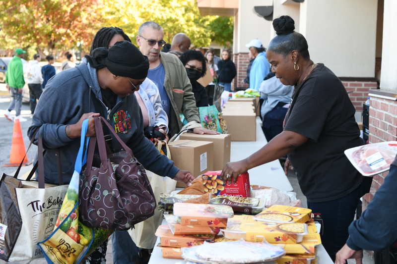10月21日,美国马里兰州海厄茨维尔市,联邦雇员领取免费食品。\n 新华社 李睿 摄