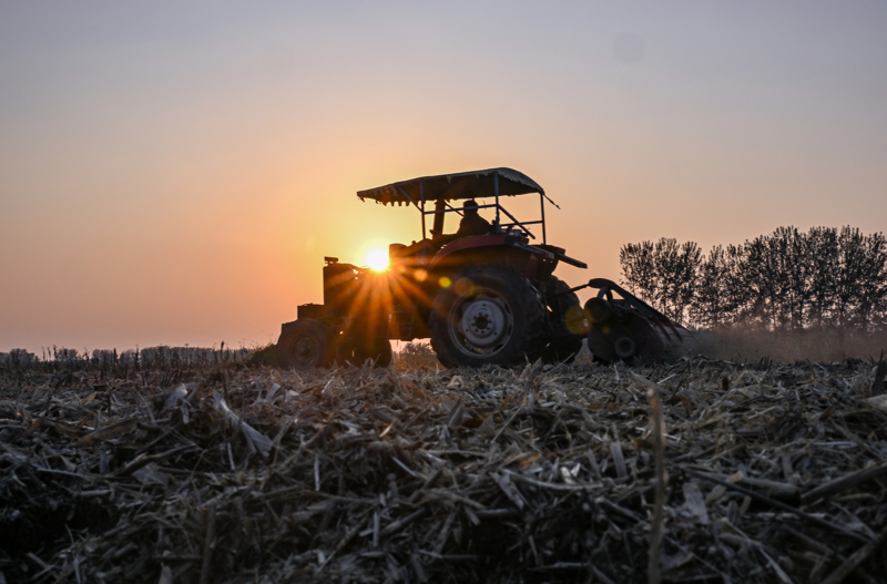 10月22日,河南省商丘市夏邑县会亭镇,农民驾驶旋耕机在田间作业。\n 新华社 王高超 摄