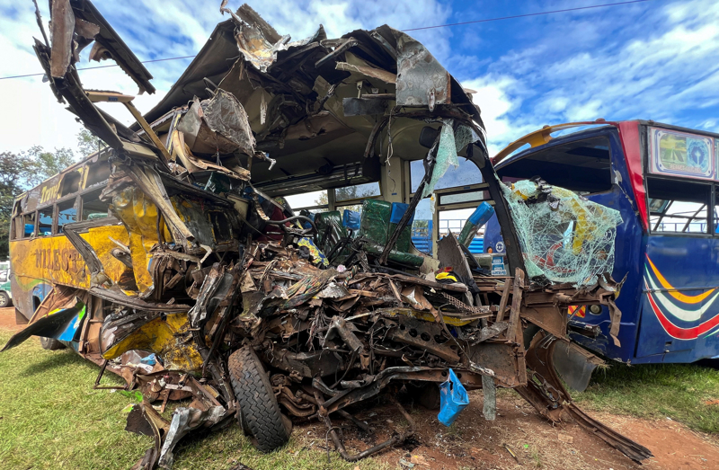 10月22日,乌干达基里扬东戈地区,发生事故的客车残骸。
