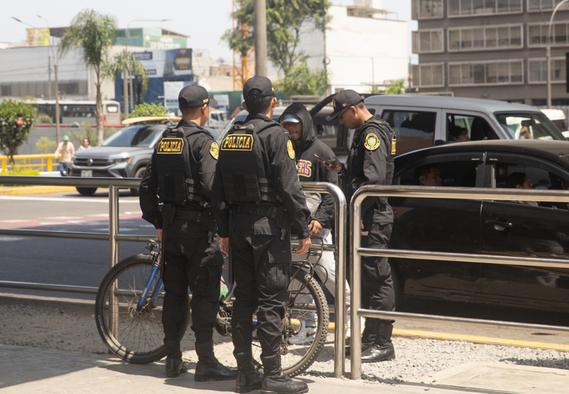 10月22日,秘鲁首都利马,警察要求一名行人出示身份证件。\n 新华社 玛丽安娜·巴索 摄